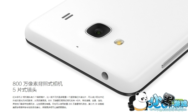 红米2为前置200万(智能美颜、支持720p视频录制)+后置800万像素(Omnivision感光元件、F/2.2光圈,每秒10连拍)。