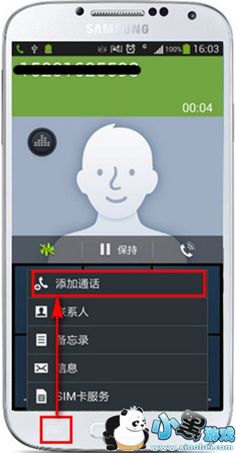 3.电话接通后,点击左下角的【菜单】键,并选择【添加通话】。