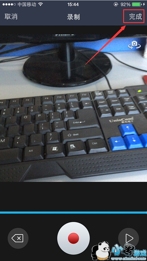 4.然后长按录制,松开暂停。录制完成后点完成。
