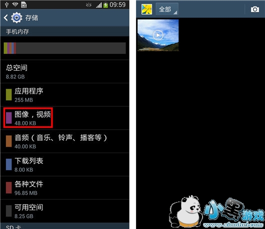 4.单击每个项目后可以查看占用内存程序详情,这里“图像,视频”为例。(手机可用空间的大小,会随着您的使用情况而变化)