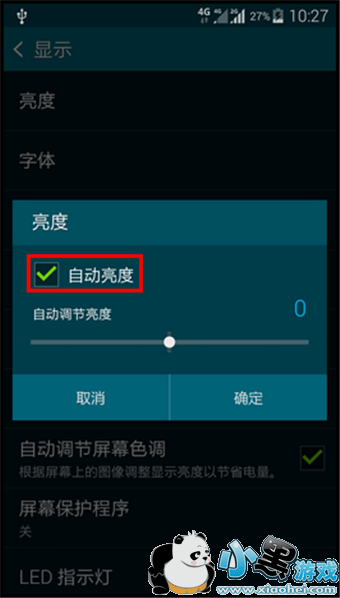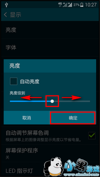 5.取消【自动亮度】的“对钩”,调整完屏幕亮度后,点击【确定】即可。
