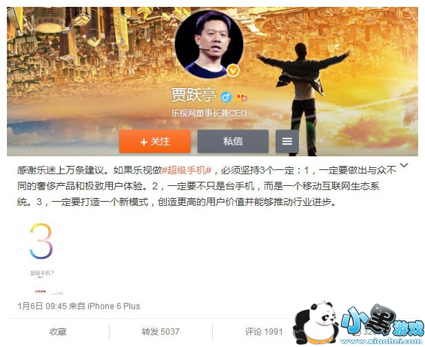 贾跃亭表示,如果乐视做超级手机:1、一定要做出与众不同的奢侈产品和极致用户体验。2、一定要不只是台手机,而是一个移动互联网生态系统。3、一定要打造一个新模式,创造更高的用户价值并能够推动行业进步。