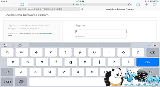 需要登录刚才注册加入 Apple Beta 版软件计划的 Apple ID。