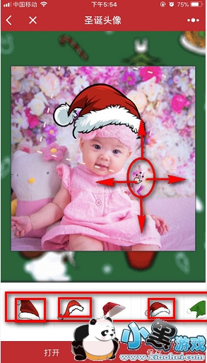 选择一个圣诞帽子的款式,目前有13款不同样式的圣诞帽子。但是只有红色和绿色两种款式,选中其中一款即可。选中圣诞帽子款式之后,你的头像上面就会出现一个很小的圣诞帽子,你可以看到帽子右下角有个如下图所示的手指和方向键组合的图标,这个就是控制帽子大小和位置的关键。