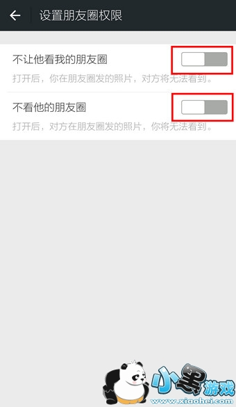 5.滑动选择【不让他看我的朋友圈】或(和)【不看他的朋友圈】即可