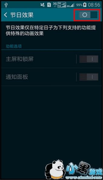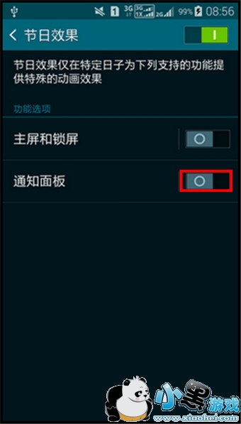 5.选择节日效果的显示位置,这里以“通知面板”为例,点击【通知面板】右侧的滑块将其点亮