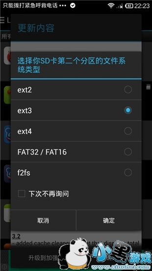 EXT3格式是给安卓系统用的,也就是说是给红米Note安装软件用的。直接按“是”进入下一步。