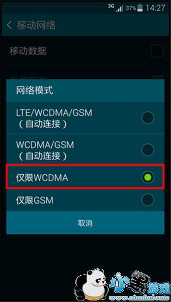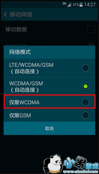 7.点击【仅限WCDMA】即可。
