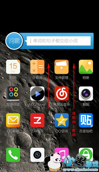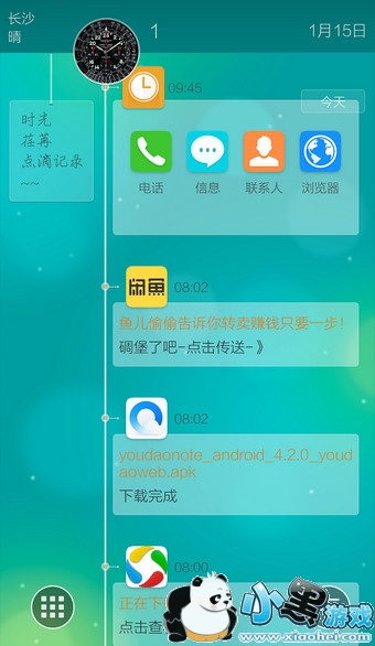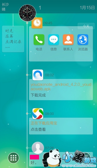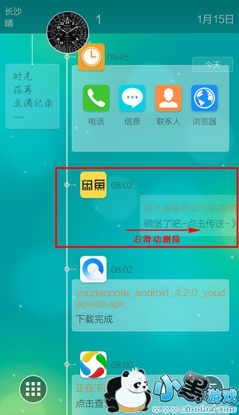 6.在时间桌面下,双指从屏幕中向下滑动即可退出时间桌面