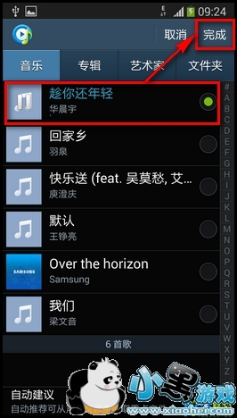 选择一个想设置为来电铃声的歌曲,然后点击【完成】。