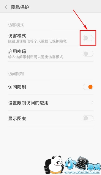 4.点击【访客模式】后的按钮