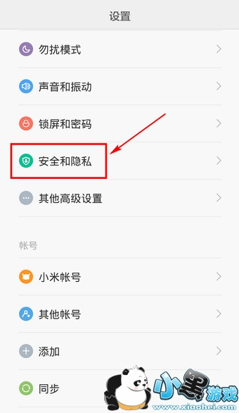 2.向上滑动,找到【安全和隐私】