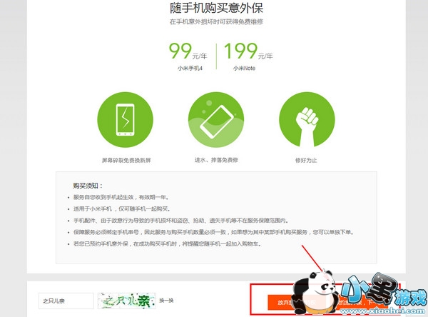 8.可选购买碎屏意外保险,输入验证码