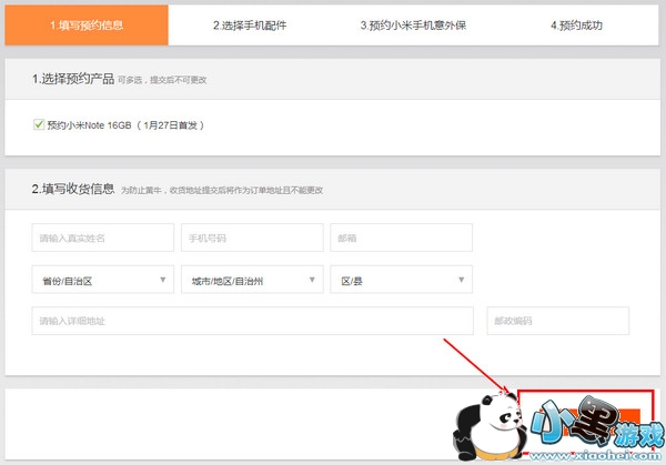 2.点击【预约小米Note】橙字