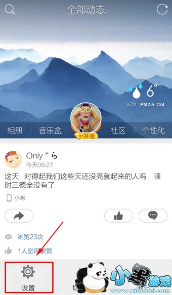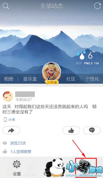 1.在QQ空间主页下,点击手机上的【菜单】键