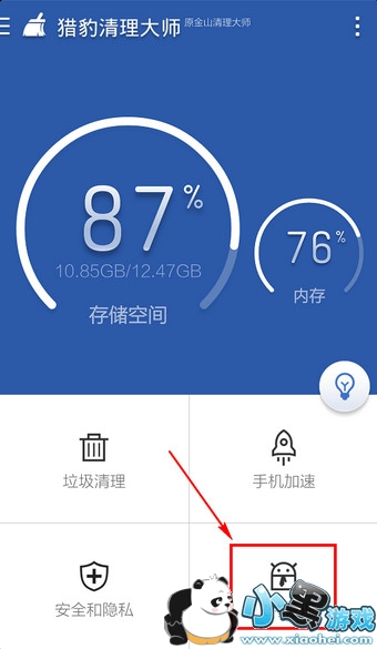 1.打开第三方清理工具比如猎豹清理大师,点击【软件管理】