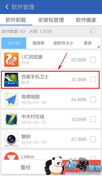 2.找到百度手机卫士,并勾选