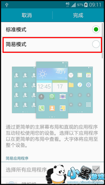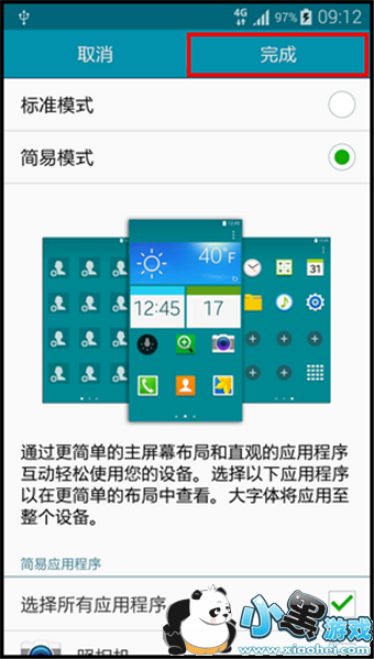 4. 选中【简易模式】后,点击【完成】即可。