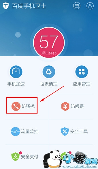 1.打开百度手机卫士,选择【防骚扰】