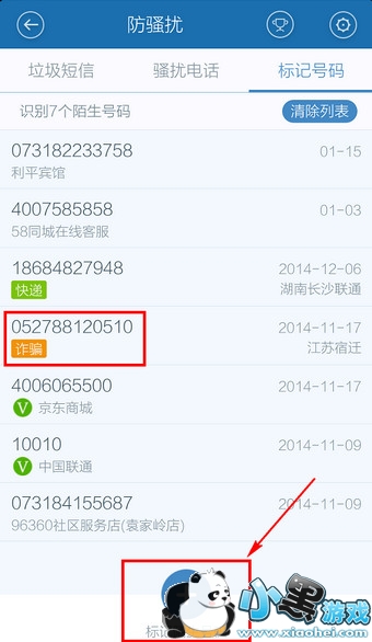 4.还可以【标记】号码,如果系统没标注,可手动标注