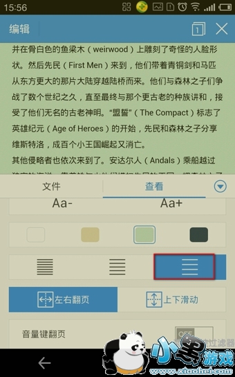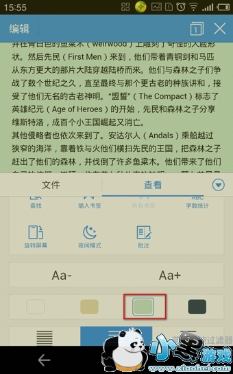 Aa+、Aa-的下面是设置不同背景颜色的按钮,可以根据文件内容风格的不同选择背景颜色