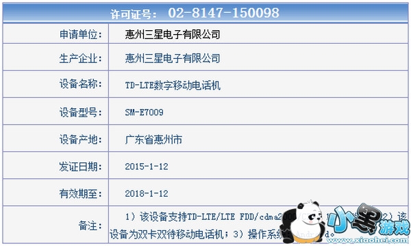 目前,一款型号为“SM-E7009”的三星新机已经拿到了工信部的入网许可,从照片和规格看就是Galaxy E7。