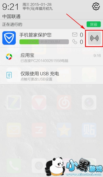 1.手机顶部下拉通知栏,点击【手机管家】右侧的【WiFi】标志可进入WiFi管理