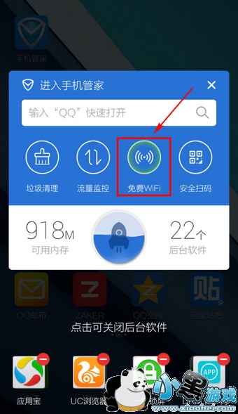 2.点击手机桌面的悬浮窗,在弹出页面里点击【免费WiFi】可进入WiFi管理