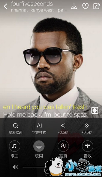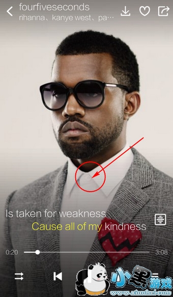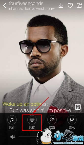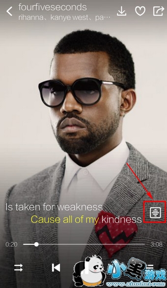 1.以FourFiveSeconds为例,我们点击【全屏歌词】标志会显示全屏歌词