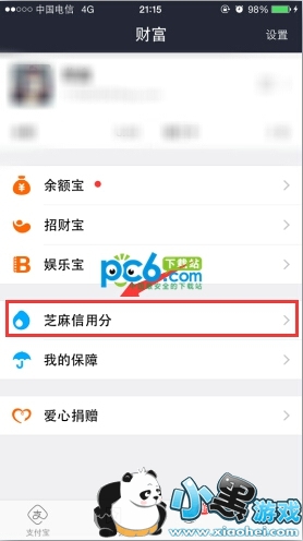 选择“芝麻信用分”