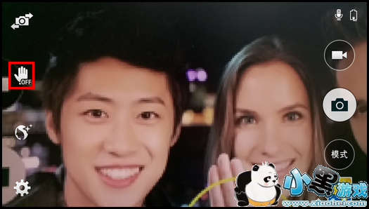 4.点击屏幕左侧【手掌】图标,OFF消失代表已开启手掌拍照。
