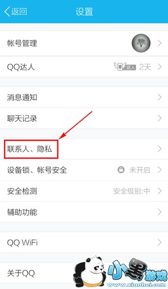 3.选择【联系人、隐私】