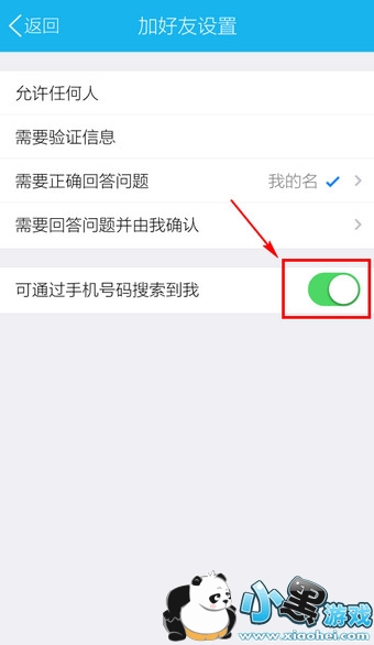 6.按钮变为白色,表示关闭选项,这样别人就无法通过手机号搜索到你了