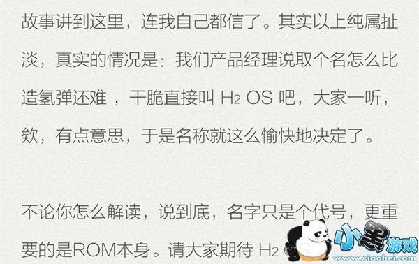 而在一加创始人刘作虎公布的H2 OS来历介绍的最后,却来了个大反转,表示H2 OS就是一时灵光乍现,之前各种高大上的解读都是“扯淡”,不知道是不是一加开的玩笑。