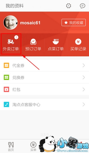 2.以【外卖订单】为例,点击进入
