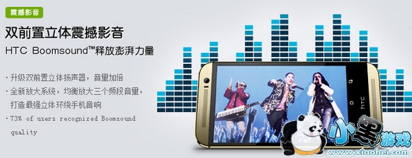 相比一般智能手机,甚至是其他品牌的旗舰机型,它们的音响大多置于机身背面、下方或者侧面,这其实是有悖于“声音直线传播”原则的,而BoomSound的“双前置立体扬声器”,在不破坏机身整体美感的前提下,在机身正面上下两边分别设置了一个钻孔式立体扬声器,让声音从正面、直线传播,直接加强了声音效果;其次,BoomSound采用的“内置扬声器放大器”可以在保证声音质量不被破坏的情况下,将扬声器的声音放大至两倍,有效地提高了扬声器性能。当然,HTC在加强外放音效的同时,也没有忽视耳机音效,BoomSound使用的“耳机放大器”以更大的功率提升声音分贝,有更好的降噪效果,并保持超低的失真。在这三大利器的保障下,无论用户使用外放和手机“面对面”玩游戏、和朋友分享视频,还是使用耳机边听音乐边看书等等,都会获得最逼真、最立体、最完美的音效体验。