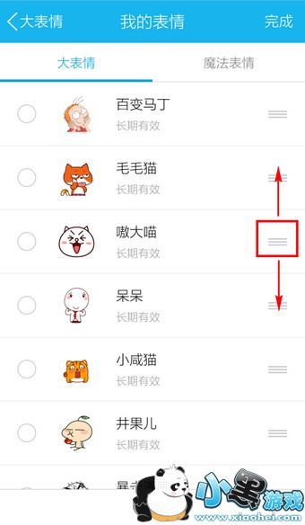 当我们在手机QQ上下载了一定量的表情后,就需要进行管理,比如把常用的排在前面,比如删除不喜欢的。