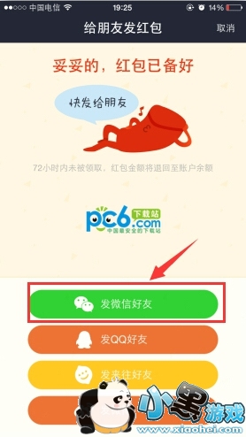 好了,钱包已经包好了,下面开始任性了,这里我们选择“发微信好友”