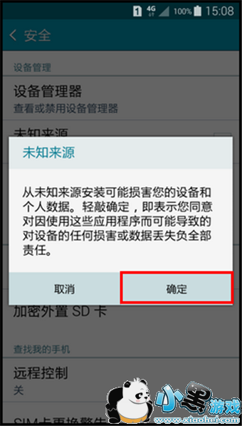 5.弹出“未知来源”提示,阅读后,点击【确定】。