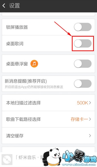 3.找到【桌面歌词】,点击后面的【灰色按钮】