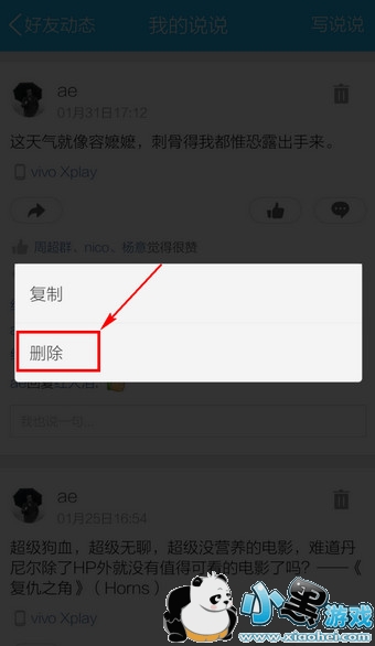 4.长按好友的评论或者自己回复的评论