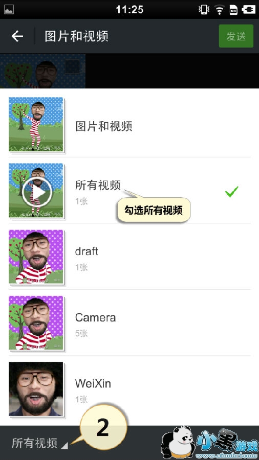 在打开的相册中就有逗拍保存的视频,选择自己想要分享的视频,发送给QQ好友即可。