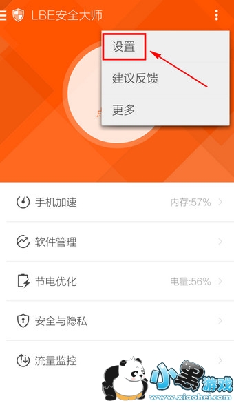 1.进入LBE安全大师,点击右上角的【更多】标志