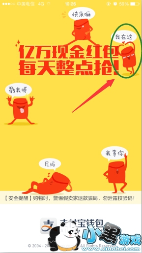 倒计时后将会出现下图,手速要快,点击“我在这”即可获得一个红包,每次游戏时候时间限制的,游戏时间内可获得多个红包这个就要看玩家的手速了。
