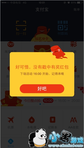 支付宝抢红包开始前正上角会出现活动倒计时。