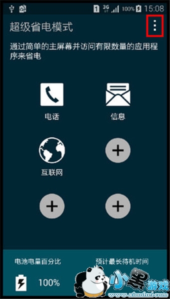 1.在超级省电模式下,点击屏幕右上角的【菜单】键。