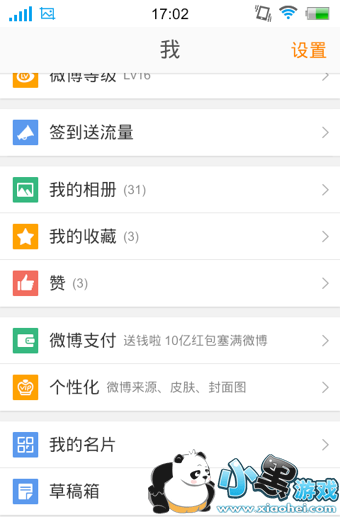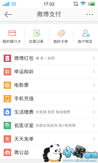 6、在【我】的界面中,找到【微博支付】,点击后,进入到微博支付界面