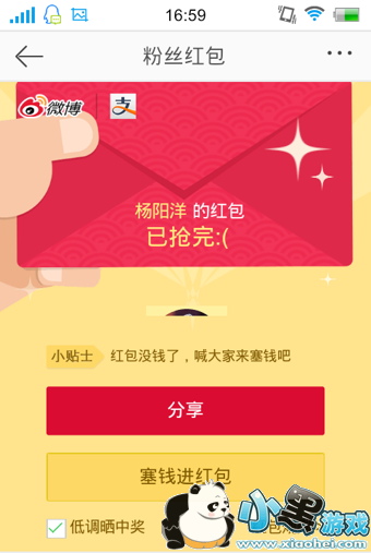 微博红包提现要绑定支付宝或银行卡哦。 更多 0