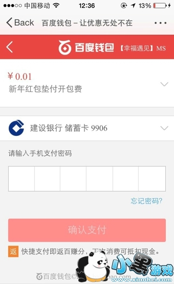 这里需要垫付0.01元“开包费”,开包后后百度会返还到你的百度账户。