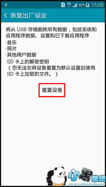 5.点击【重置设备】。